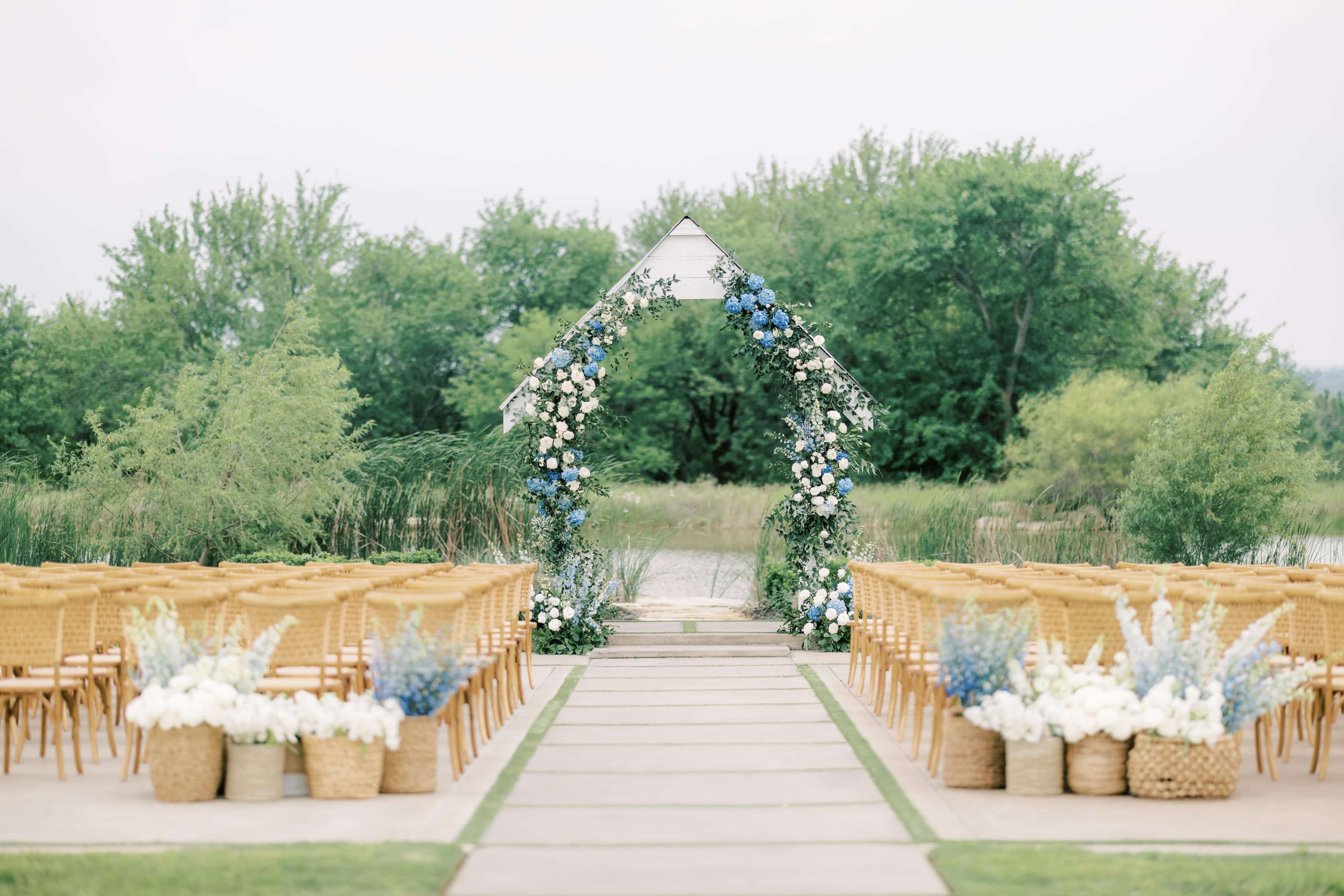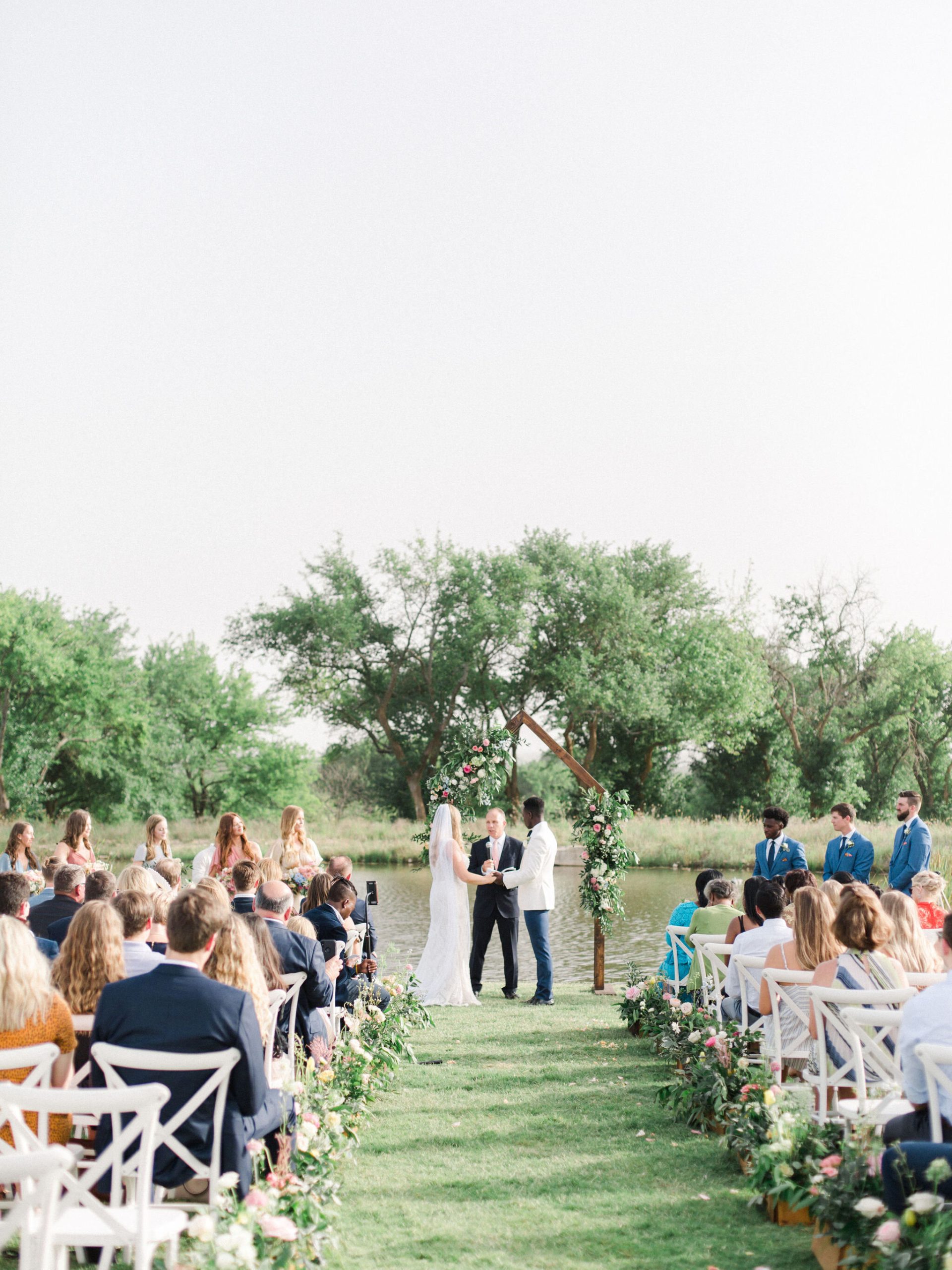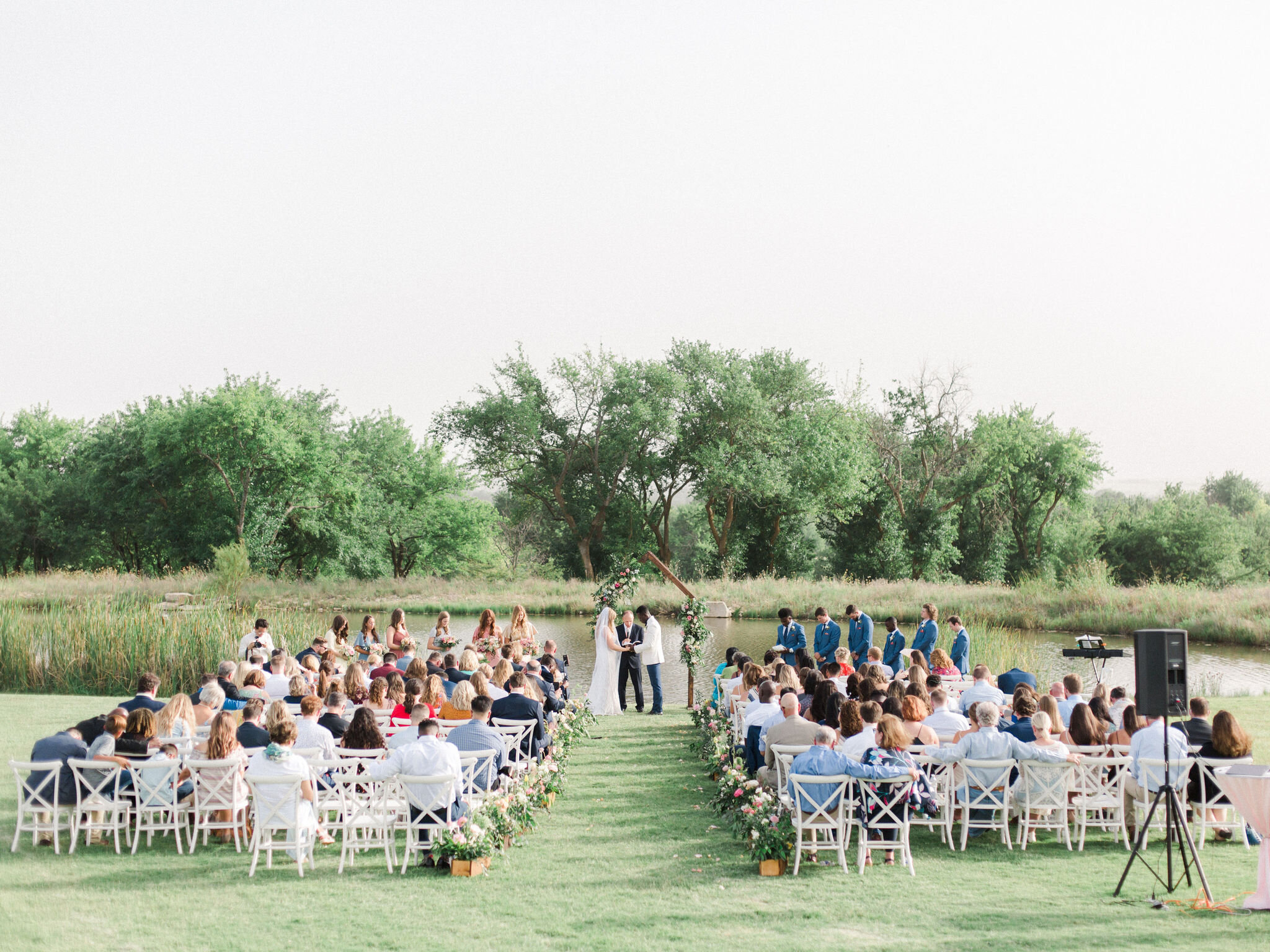 If you are looking for a picturesque outdoor wedding venue near Denton, TX browse through our photos of real weddings at The Nest at Ruth Farms. Our charming outdoor ceremony site is located directly behind the venue, and can seat up to 240 guests. It is perfect for those looking for a more natural garden or European style wedding ceremony. This site provides the option to decorate the built-in wooden arch, or you can opt to set up in the grass for a more natural look in front of our peaceful, scenic pond.